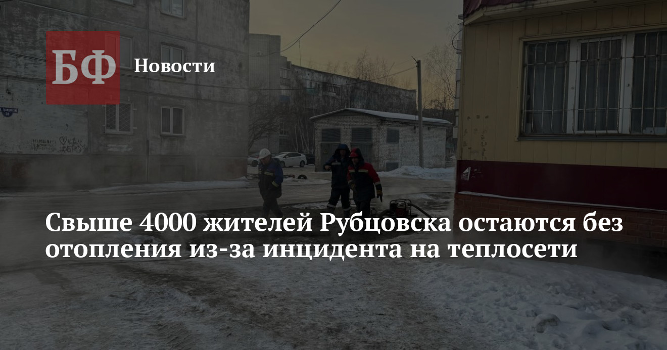 7 февраля мэрия Рубцовска в официальном Telegram-канале информировали об ограничении подачи теплоносителя в связи с дефектом на источнике теплоснабжения по переулку Гражданскому возле домов №№ 36, 38 и 27. Под отключение попали 51 многоквартирный дом, 50 частных домов, несколько соцучреждений и административных зданий. В общей сложности без тепла осталось порядка восьми тысяч жителей.
