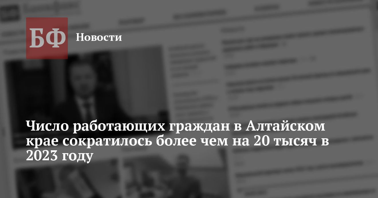Алтайский край занял 68 место в рейтинге регионов России по динамике рынка труда в 2023 году. Число работающих в прошлом году сократилось на 1,9% или на 20,7 тысячи человек. Доля безработных в четвертом квартале года составила 3,6%.