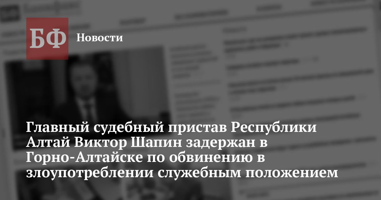 Как стало известно, на днях в Горно-Алтайске был задержан на 10 суток по статье 90 УК РФ до предъявления обвинения главный судебный пристав Республики Алтай Виктор Шапин. По заявлению прокурора Республики Александра Громоздина, обвинение Шапину пока не предъявлено, при этом пояснить причины, по которым главный судебный пристав был задержан, Громоздин отказался.