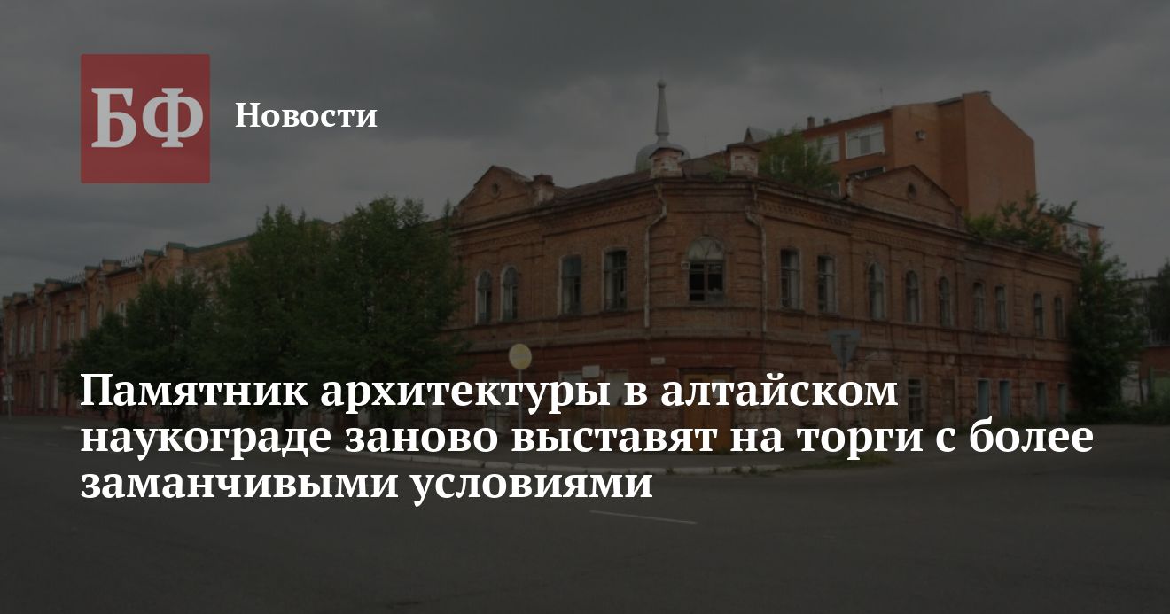 Однако торги отменили. В администрации Бийска объяснили это тем, что в рамках самоконтроля было выявлено несоответствие порядка процедуры проведения конкурса установленным требованиям. В будущем мэрия планирует провести новые торги, но уже на более привлекательных для инвестора условиях. Так, чиновники рассчитывают внести изменения в охранное обязательство на памятник, выданное Алтайохранкультурой 10 марта 2021 года. Сейчас в нем указано, что работы по реставрации собственник обязан провести до 1 марта 2026 года. Власти же Бийска попросили ведомство увеличить срок, направив соответствующее обращение 18 марта текущего года. «Срок проведения конкурса зависит от внесения изменений в охранное обязательство», — проинформировали в мэрии. Кроме того, в следующий раз начальная цена уменьшится на 20 копеек — ровно до одного рубля.