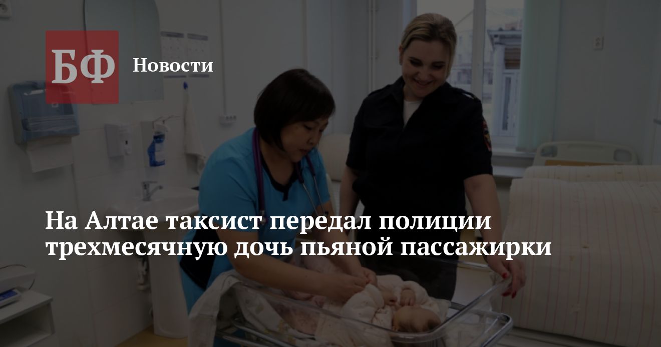 В Горно-Алтайске водитель такси помог трехмесячной дочке пьяной клиентки. Во время пути женщина уснула, из-за чего ребенок оказался на полу салона. Понимая, что малышку нельзя оставлять с такой матерью, таксист отвез обеих в полицию. Подробности 6 мая сообщила пресс-служба МВД по Республике Алтай.