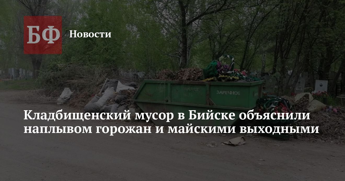 Добавим, что за состояние бийских кладбищ отвечает МУП «Память». В муниципальной организации сообщили «Банкфаксу», что проблема связана с большим наплывом людей в преддверии Родительского дня, после которых остается много мусора. Убирать его не успевают, поскольку работает всего восемь человек. Кроме того, рабочие не могли ранее полноценно заняться очисткой территорий кладбищ, так как отдыхали на майских праздниках. В МУП отметили, что 14 мая уборщики уже занимались вывозом мусора на Малоугреневском кладбище, а до конца мая организация намерена убрать мусор на всех погостах.