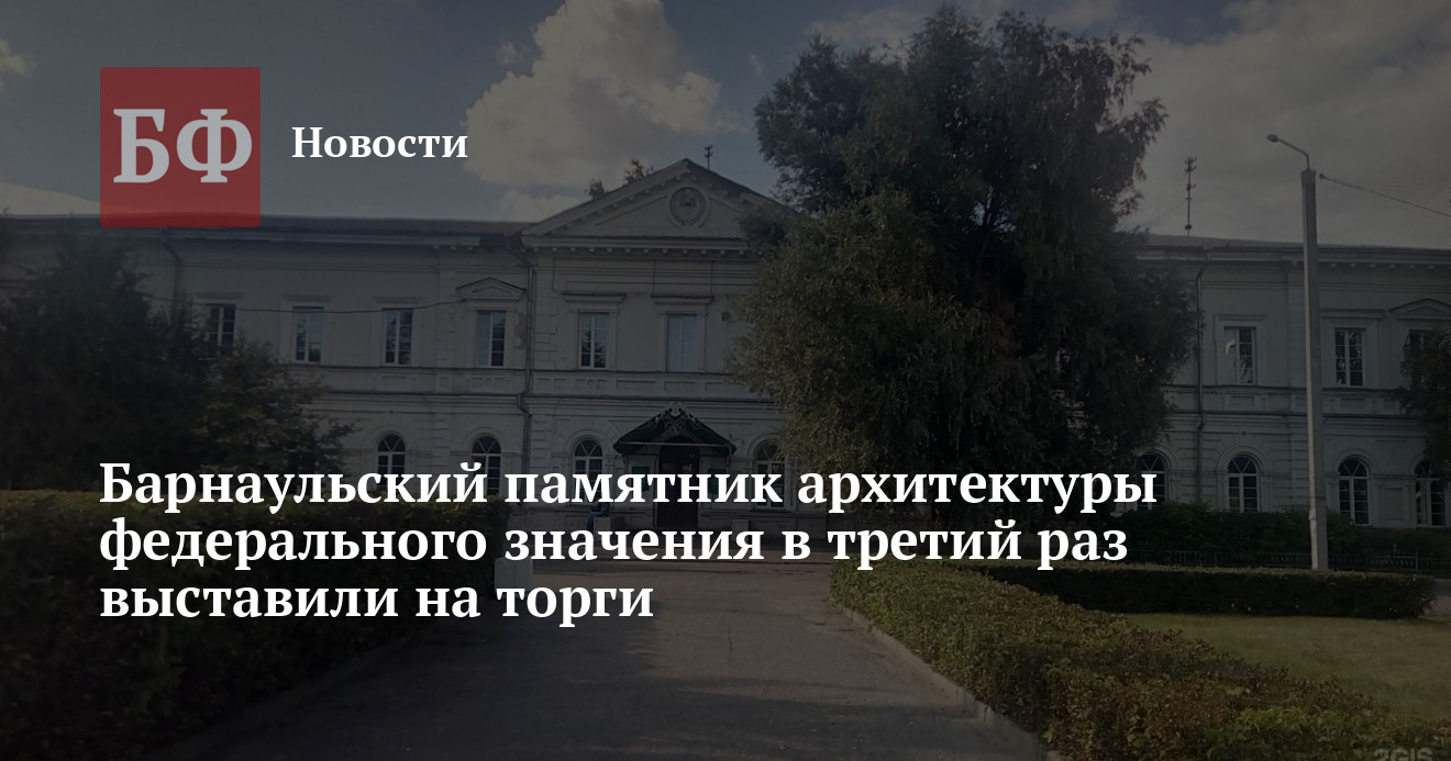 Как сообщается на сайте ГИС «Торги», продажа состоится в форме электронного аукциона. Прием заявок начался 8 мая и продлится до 3 июня. А на 7 июня намечен сам аукцион. Начальная цена объекта та же самая, что и в предыдущий раз — 32,5 млн рублей. Тогда в аукционе пожелало участвовать единственное лицо — ООО «Сибирьконтракт плюс» под руководством Юрия Фрица. Но до торгов компанию не допустили из-за проблем с внесением задатка. Тогда в беседе с «Банкфаксом» предприниматель дал понять, что рассчитывает на победу в следующем аукционе. В его планах использование памятника в «коммерческо-образовательных» целях.