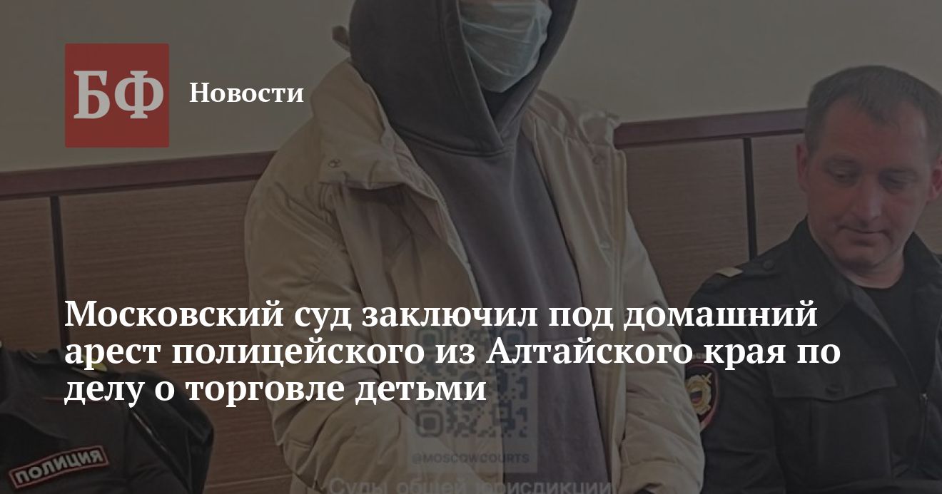 21 мая Преображенский районный суд Москвы избрал меру пресечения в отношении сотрудника полиции из Алтайского края Натальи Душкиной — ее заключили под домашний арест. Как сообщили в Telegram-канале столичных судов общей юрисдикции, женщина является фигуранткой уголовного дела о торговле детьми.