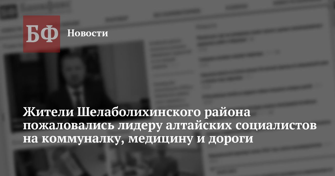 С 24 по 25 мая в Шелаболихинском районе работала выездная приемная депутата Госдумы, главы алтайского реготделения «Справедливой России — За правду» Александра Терентьева. Как сообщила пресс-служба партии, на встречу с социалистами пришли более 20 человек, которые попросили помощи в решении свыше 30 проблем — от коммунальных вопросов, до медицины и качества дорог.