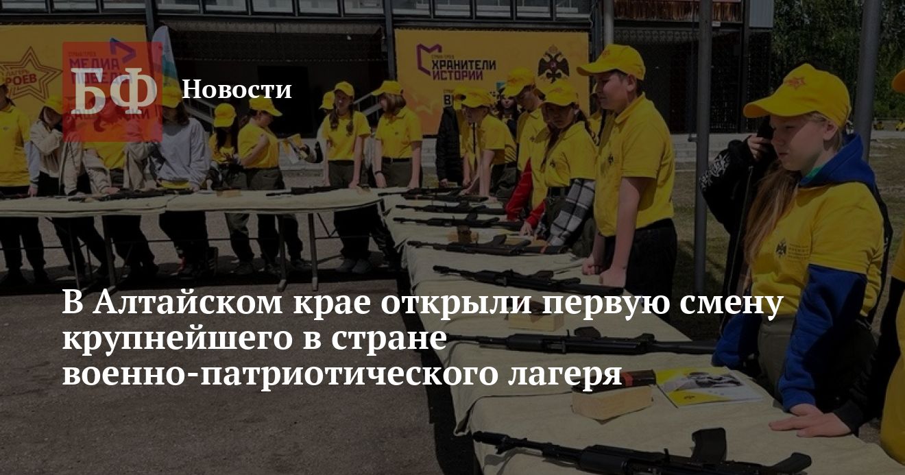 На базе лагеря «Юность» в Егорьевском районе 3 июня начал работу крупный военно-исторический лагерь «Страна героев». Как сообщила пресс-служба правительства Алтайского края, дети здесь будут изучать историю России и основы начальной военной подготовки.