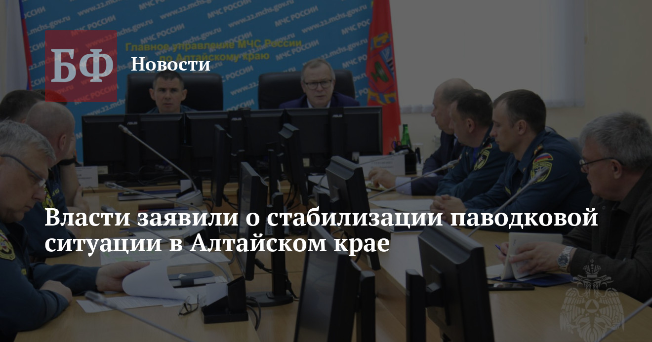 Ситуация с паводком в Алтайском крае стабилизировалась после спада уровня воды в реках. Об этом заявили 4 июня во время совещания, которое провел зампред правительства региона Игорь Степаненко, сообщила пресс-служба ГУ МЧС по Алтайскому краю.
