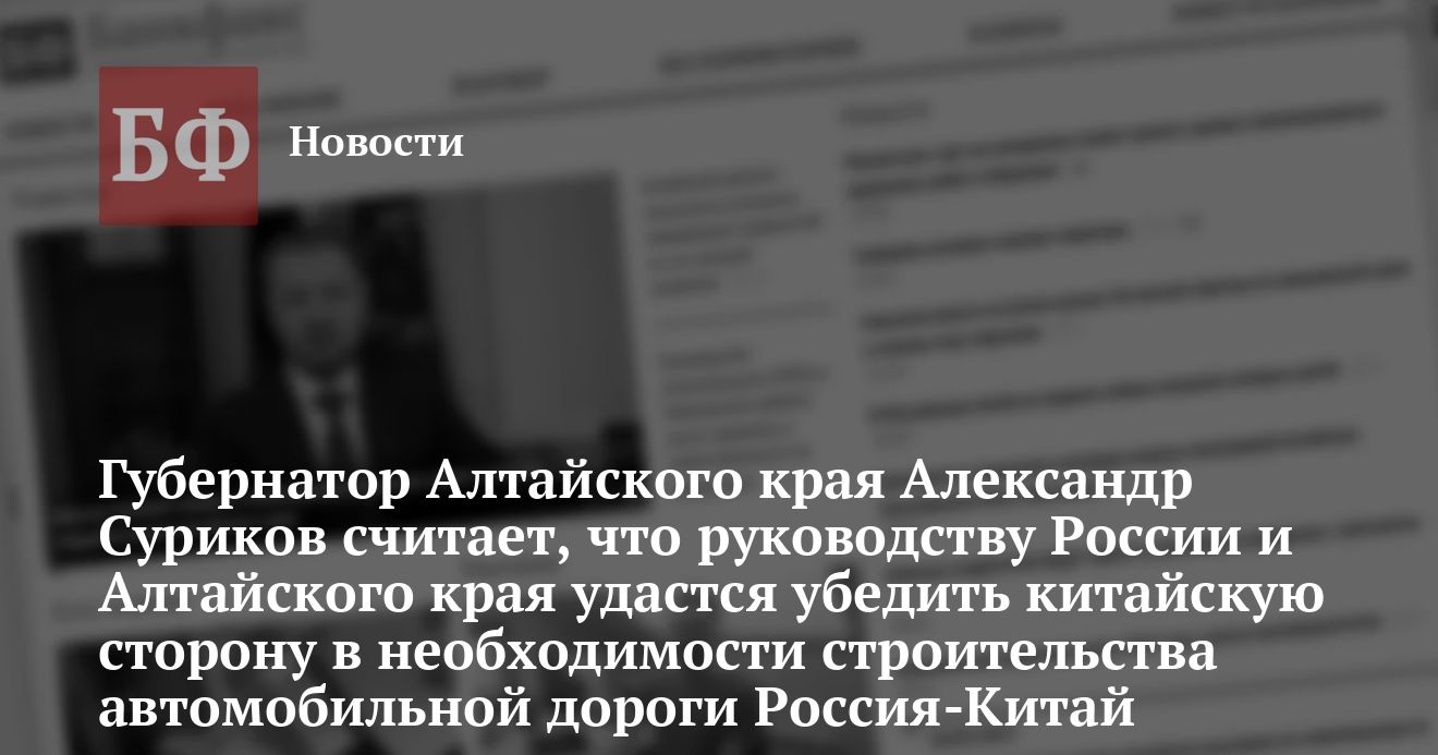 Суриков убежден, что российскому правительству совместно с руководством края удастся убедить китайскую сторону в необходимости осуществления данного проекта.