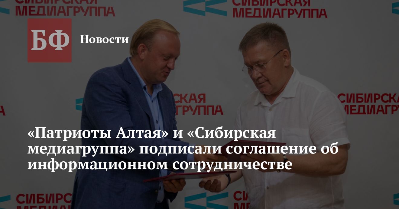 Руководители «Сибирской медиагруппы» и ассоциации гражданско-патриотических организаций «Патриоты Алтая» 25 июня подписали соглашение о сотрудничестве. Стороны договорились совместно работать над формированием активной гражданской позиции у жителей Алтайского края — противодействовать распространению экстремизма и укреплять традиционные ценности.
