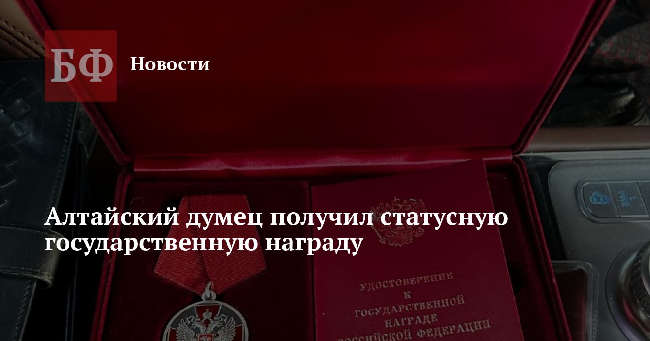 Депутат Госдумы РФ, лидер алтайских социалистов Александр Терентьев отмечен медалью ордена «За заслуги перед Отечеством II степени». Как сообщает пресс-служба алтайского отделения партии «Справедливая Россия — За правду», заслуженную награду парламентарию вручили в торжественной обстановке в Кремле.
