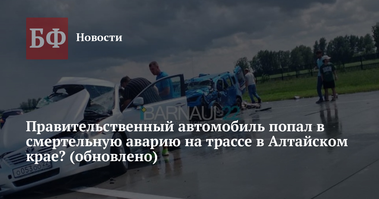 По информации источника «Банкфакса», автомобиль Toyota Camry может быть связан с автопарком правительства Алтайского края. Об этом, в частности, говорит характерный госномер иномарки. Предполагается, что она может принадлежать КГБУ «Автохозяйство № 1», которое предоставляет автомобили краевым чиновникам. Информация о пострадавших в правительственном авто противоречива. По некоторым данным, водитель машины скончался. В то же время есть сведения, что он госпитализирован и находится в реанимации. Кто еще находился в транспортном средстве, пока неизвестно.