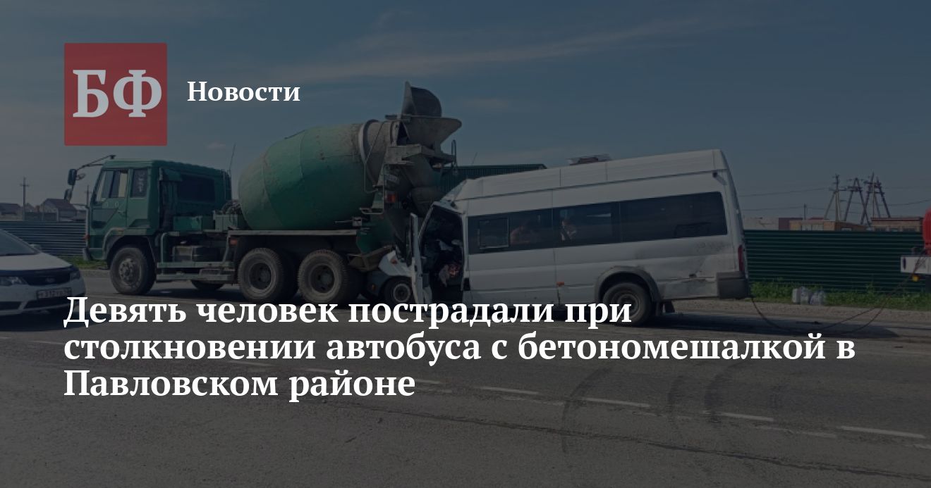 15 июля пассажирский автобус врезался во впередиидущую бетономешалку на трассе А-321 в Павловском районе. В результате столкновения пострадали девять пассажиров, в том числе несовершеннолетние. Следственные органы возбудили уголовное дело. Подробности сообщили в пресс-службах ГУ МВД России по Алтайскому крае, регионального управления СК и прокуратуры.