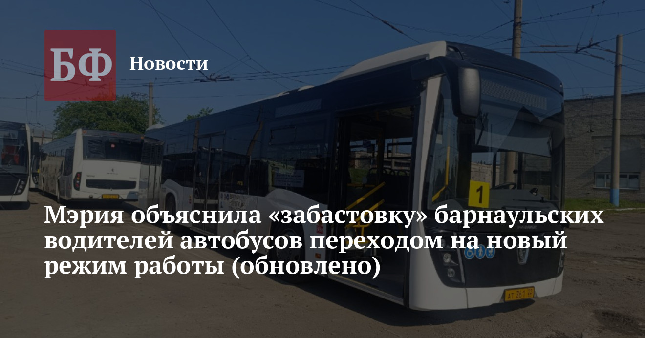 В Барнауле 5 августа вовремя не вышли на линию автобусы маршрутов № 1 и № 10, которые обслуживает МУП «Горэлектротранс». В соцсетях это связывают с забастовкой водителей, тогда как администрация города объясняет ситуацию сбоем, возникшим из-за перехода на новый режим работы.