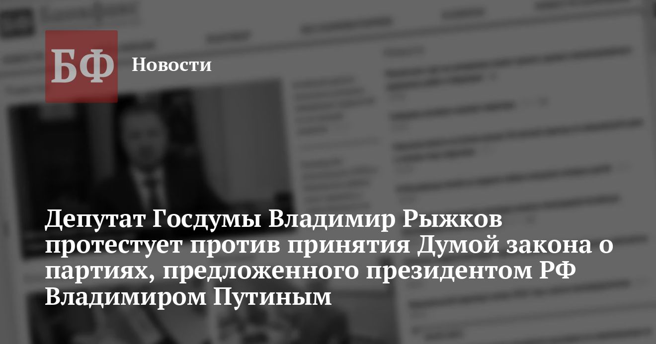 Как стало известно, группа депутатов Государственной Думы во главе с Владимиром Рыжковым 26 декабря заявила о неприятии президентского законопроекта. Рыжков заявил о том, что депутаты намерены внести на рассмотрение парламентариев альтернативный проект закона о партиях, в котором предусматривается существование малочисленных объединений. Так, в депутатской версии закона численность партийной организации должна составлять не десять, а две тысячи человек.