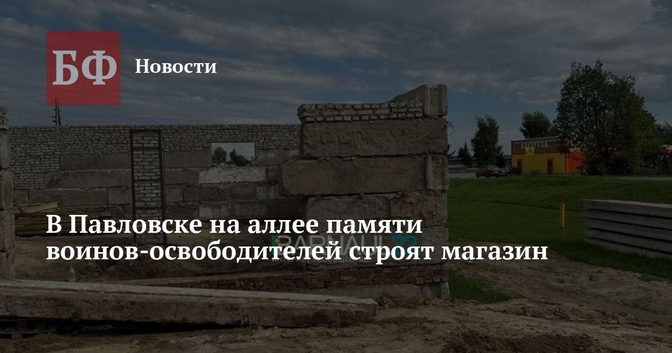 Часть аллеи памяти воинов-освободителей в Павловске оказалась занята стройкой. На этот факт обратил внимание участник одного из интернет-сообществ и поинтересовался, как такое могло произойти. Глава администрации Павловского сельсовета Владимир Калинин рассказал «Банкфаксу», что сам когда-то был удивлен ситуацией. Как выяснилось, часть территории под аллеей в свое время продала в частные руки администрация Павловского района. Сейчас собственник земли возводит на ней магазин.