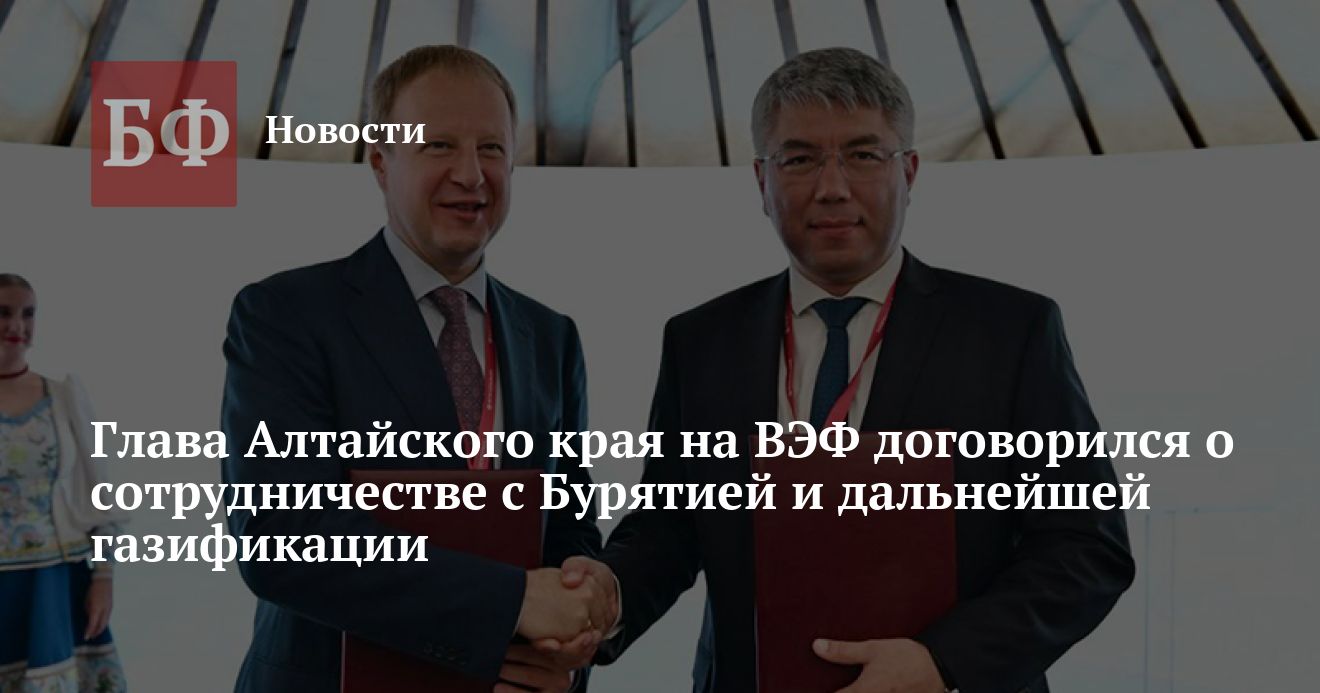 С 3 по 6 сентября во Владивостоке проходит Восточный экономический форум (ВЭФ), в котором принял участие губернатор Алтайского края Виктор Томенко. Как сообщает, пресс-служба правительства региона, в рамках форума глава обсудил экономическое сотрудничество с Бурятией, а также провел рабочую встречу с генеральным директором компании «Газпром межрегионгаз».