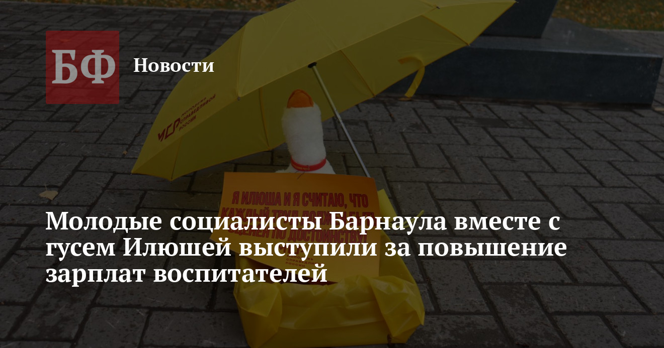 27 сентября активисты «Молодежи Справедливой России» провели в Барнауле пикет, приуроченный ко Дню дошкольного работника. Социалисты выступили за повышение зарплат воспитателей и их коллег. Компанию пикетчикам составил плюшевый гусь Илюша, сообщает пресс-служба алтайского реготделения партии.