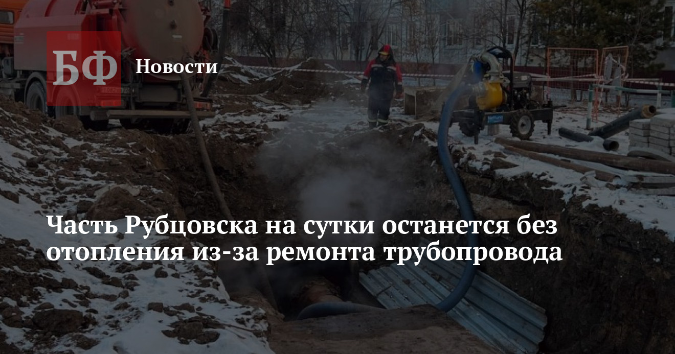 С 8:00 18-го до 8:00 19 ноября рубцовское подразделение «Сибирской генерирующей компании» проводит ремонтные работы системы отопления для устранения повреждения на магистральном трубопроводе. Временное ограничение коснулось десятков домов. Речь идет о переулке Алейском, улицах Карла Маркса, Красной, Крупской, проспектах Ленина и Рубцовском, улице Сельмашсклй от Рубцовского проспекта в северном направлении до улицы Никольской, включая крайних потребителей северной и западной частей города (по улицам Ключевская, Троицкая, Красногорская, Заринская, Тракторная, Рабочему тракту, Мечникова, Полтавской, Мичурина, Павлова, Циолковского, Менделеева, Одесской и проспекту Калашникова).