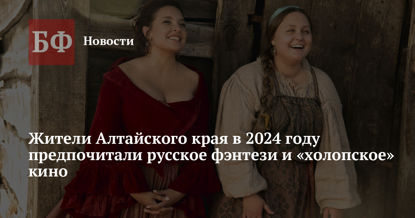 Самым кассовым кинофильмом в Алтайском крае в 2024 году стала комедия Клима Шипенко «Холоп 2». Согласно данным Единой федеральной автоматизированной информационной системе сведений о показах фильмов (ЕАИС), в регионе она привлекла более 140 тысяч зрителей и собрала в прокате 46,8 млн рублей. Любопытно, что большой популярностью в крае также пользовались российские фэнтези, музыкальные мелодрамы и мультфильмы.