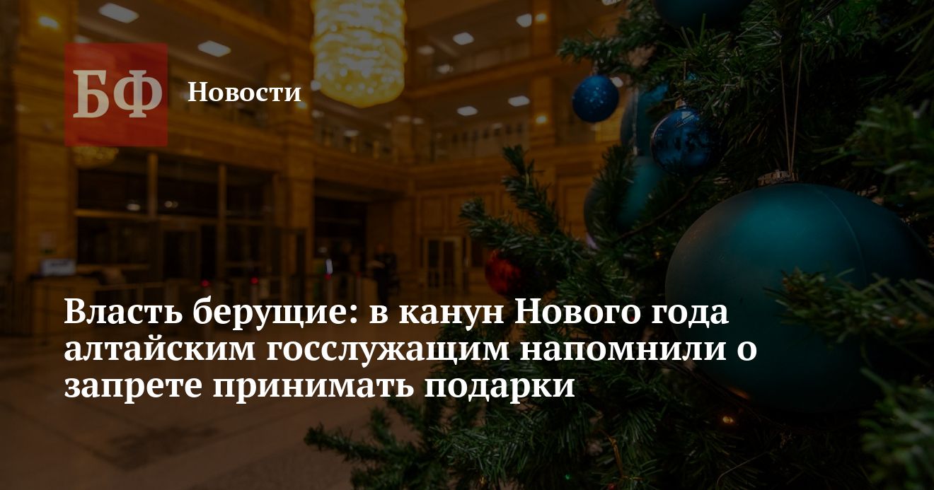 Следственное управление СК России по Алтайскому краю напомнило должностным лицам региона о запрете дарить и получать подарки. В случае его несоблюдения госслужащим может грозить увольнение и даже уголовная ответственность, сказано на сайте алтайского следкома.