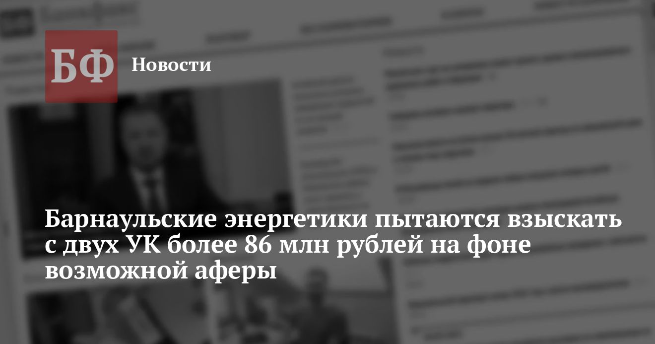 «СГК-Алтай» и «Барнаульская горэлектросеть» инициировали судебные процессы в отношении связанных между собой управляющих компаний Барнаула — «Первая» и «Октябрьский». Энергетики требуют взыскать с коммунальщиков более 86 млн рублей в виде долгов за ресурсы и неустойки, следует из данных картотеки Арбитражного суда Алтайского края. По информации источников «Банкфакса», долги могли образоваться в результате мошенничества.