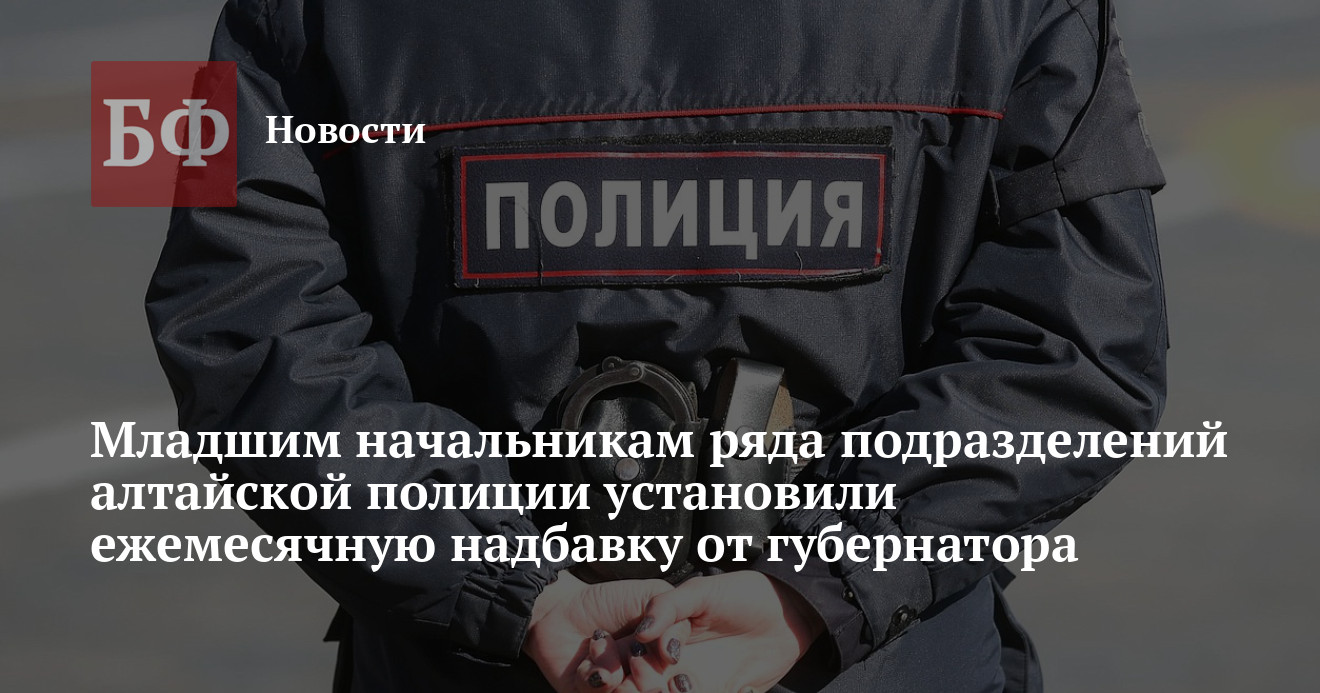 Губернатор Алтайского края Виктор Томенко принял решение материально поддержать младший начальствующий состав ряда подразделений ГУ МВД по региону. С 1 января 2025 года им полагается дополнительная ежемесячная выплата в размере 7 тысяч рублей, следует из проекта отчета начальника управления МВД России по городу Барнаулу за 2024 год Александра Майдорова. Информацию «Банкфаксу» также подтвердили в пресс-службе краевого главка полиции.