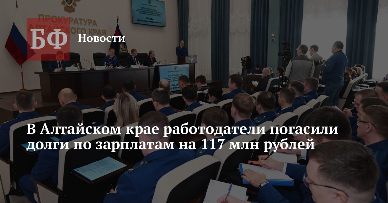 Вмешательство прокуратуры Алтайского края позволило вернуть долги работодателей по зарплатам рабочих на сумму 117 млн рублей. Об этом сообщила пресс-служба управления генерального надзорного ведомства по Сибирскому федеральному округу.