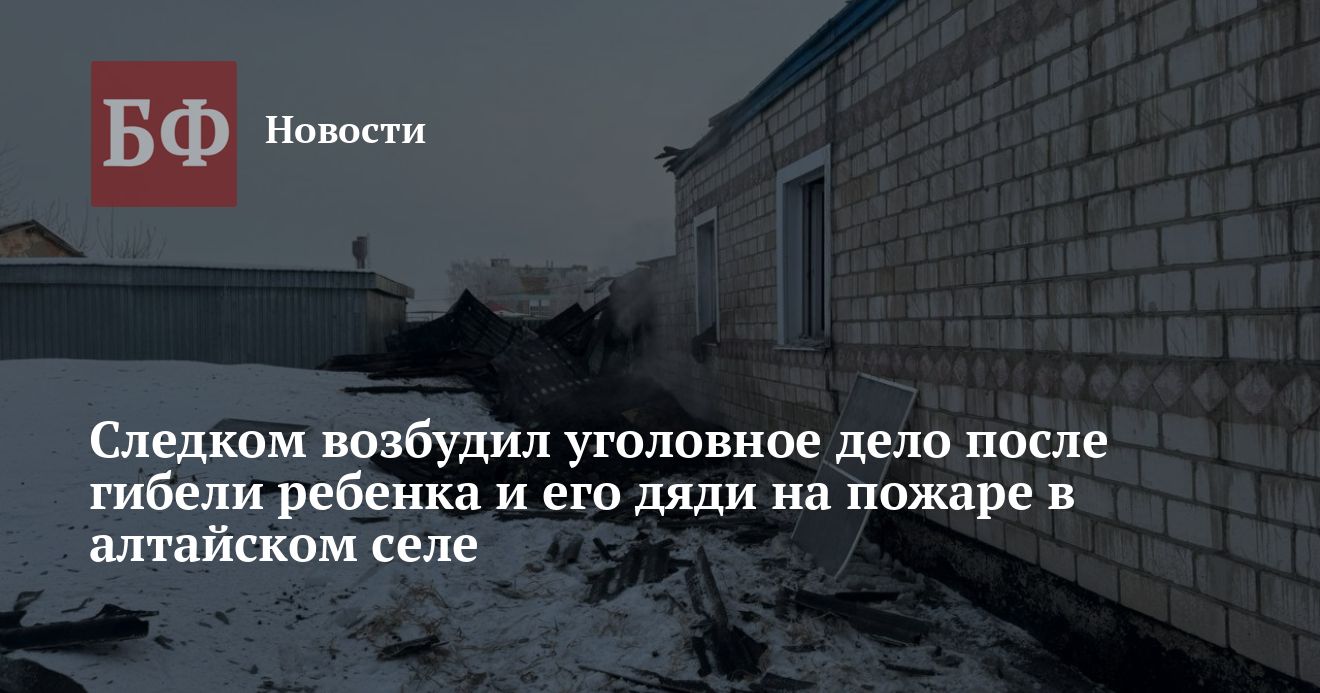 Правоохранители расследуют уголовное дело по факту пожара в селе Подсосново Немецкого национального района, в результате которого погибли девятилетний мальчик и его дядя. Об этом сообщили пресс-службы СУ СК и прокуратуры Алтайского края 22 февраля.