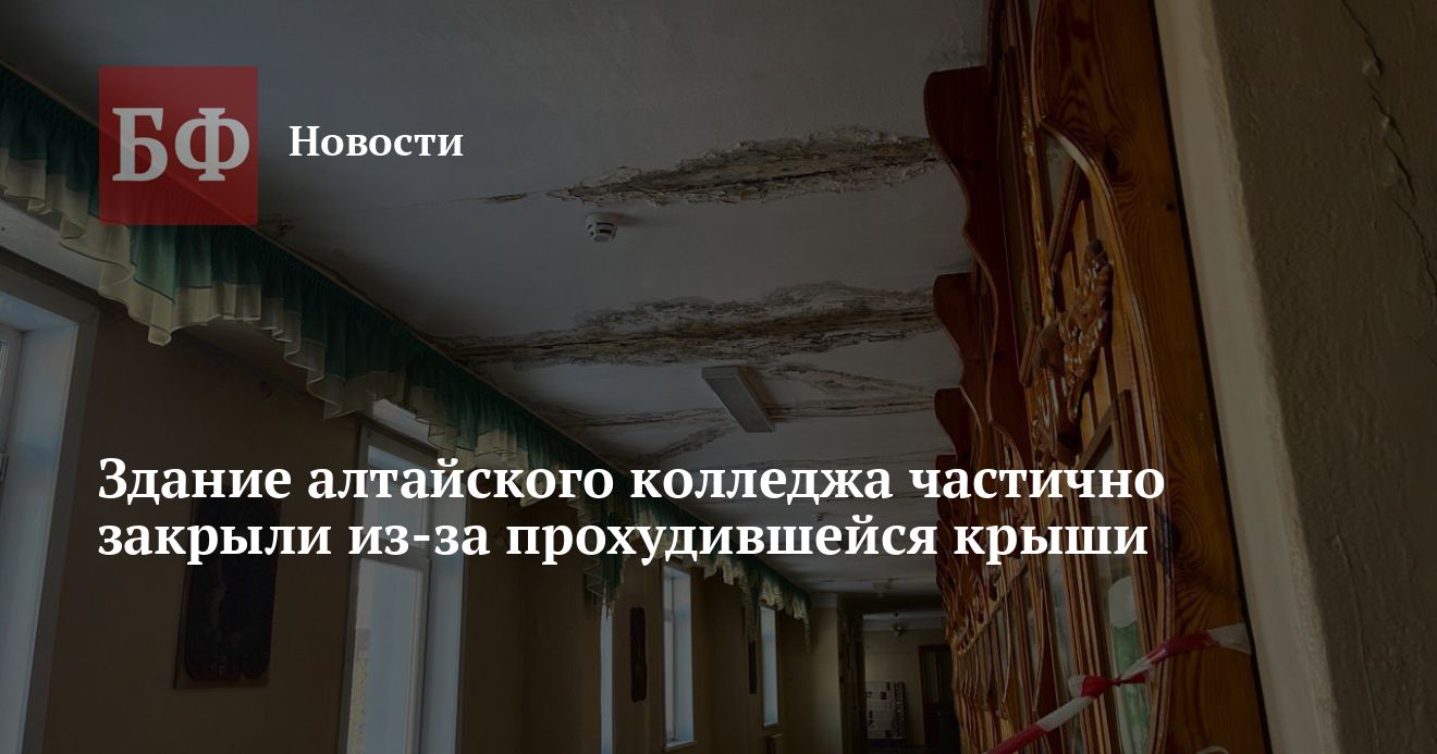 Третий этаж главного корпуса КГБПОУ «Алтайский колледж промышленных технологий и бизнеса» пришлось «вывести» из образовательного процесса, потому что крыша здания сильно протекает. О проблеме сообщили в соцсетях, а руководство учреждения подтвердило наличие проблемы.