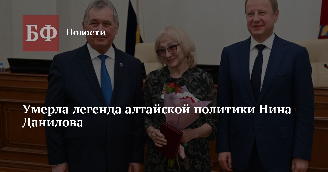 На 78 году жизни умерла Нина Данилова, которая представляла Алтайский край в Госдуме II и V cозывов, а также была депутатом регионального парламента. Об этом 14 марта в своем Telegram-канале сообщил пресс-секретарь алтайского крайкома КПРФ Юрий Красильников.