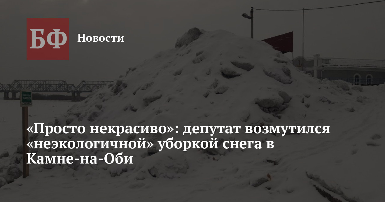 Депутат Каменского городского Совета, общественник Денис Колесников обратился в Росприроднадзор по поводу вывоза и складирования грязного снега на участке акватории реки Обь. Он рассказал ИА «Банкфакс», что таким образом в городе очистили набережную в преддверии проводов зимы. При этом чиновники не видят в этом каких-либо нарушений.