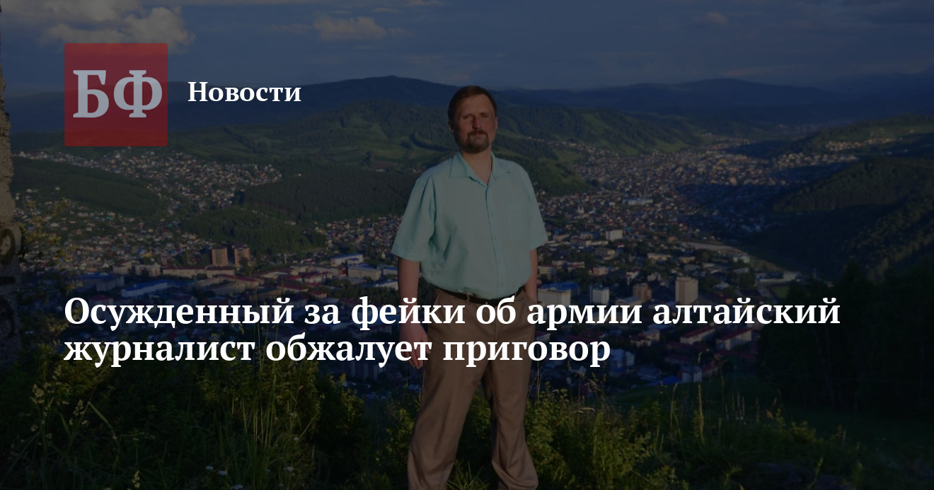 По материалам суда, 17 марта 2025 года Верховный суд Республики Алтай принял апелляционную жалобу журналиста Сергея Михайлова, который намерен оспорить приговор Горно-Алтайского городского суда. Первая инстанция признала его виновным в распространении фейков об армии. Мужчина с этим не согласен. Заседание назначено на 9 апреля. Рассматривать жалобу будет судья Евгений Табакаев.