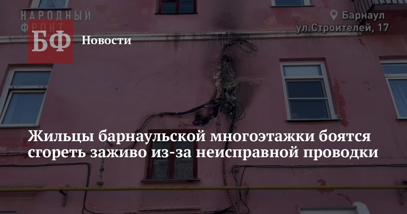 Жители Барнаула обратились к представителям «Народного фронта» в Алтайском крае с просьбой решить проблему с неисправной проводкой в многоквартирном доме. Неделю назад по этой причине там случился серьезный пожар, который удалось потушить. Однако граждане боятся, что в следующий раз это может обернуться трагедией.