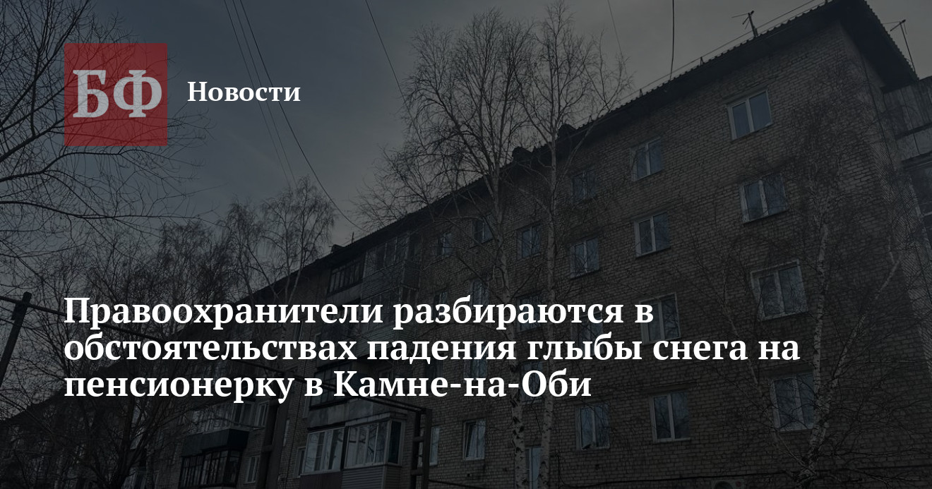 Правоохранительные органы проводят проверки по факту ЧП В Камне-на-Оби, в результате которого пострадала пенсионерка. На женщину с крыши многоквартирного дома упала снежная глыба. Как сообщают пресс-службы СУ СК РФ по Алтайскому краю и региональной прокуратуры им предстоит дать правовую оценку действиям сотрудников управляющей компании, на обслуживании которой находится дом.