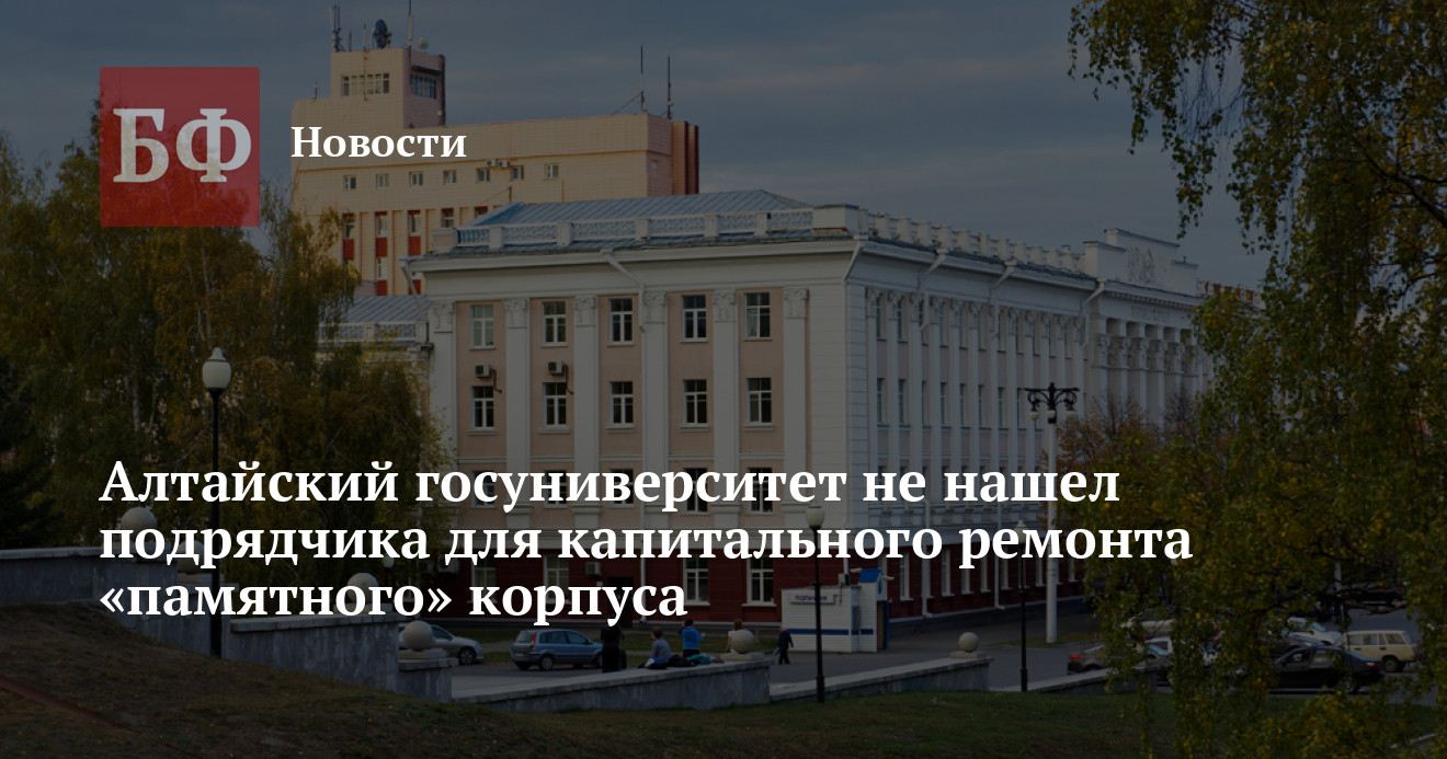 7 марта Алтайский государственный университет опубликовал заявку на поиск подрядчика по капитальному ремонту фасада и крыши учебного корпуса на Ленина, 61, известного среди студентов как корпус «Л». Итоги аукциона подвели 25 марта. На участие не было подано ни одной заявки, в связи с чем аукцион признали несостоявшимся.