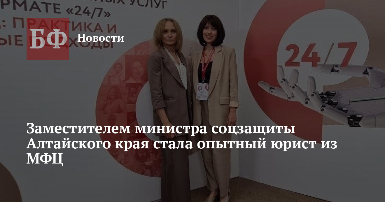 Пост замминистра социальной защиты Алтайского края, начальника управления по социальным выплатам и обеспечению деятельности после ухода Оксаны Кудиновой достался Алене Кашлевой. Как сообщила пресс-служба регионального ведомства 1 апреля, до назначения на эту должность она более 13 лет работала в МФЦ.