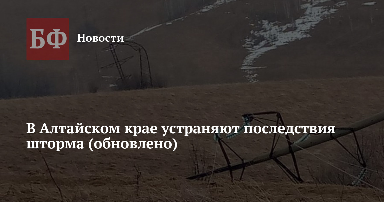 6 апреля специалисты начали восстанавливать линию электропередачи 110 кВ в Солонешенском районе. Сообщается, что на месте работали 40 человек и 18 единиц техники. В «Алтайэнерго» подчеркнули, что данный участок является одним из самых сложных, так как находится в труднодоступной местности. Отмечается, что потребители, которых снабжает солонешенская линия электропередачи в Алтайском крае и Республике Алтай, запитаны от 29 резервных источников снабжения. Остальные восстановительные работы на 6 апреля были завершены. Так, минувшей ночью удалось запитать всех потребителей, которые попали под отключение из-за шторма. В данный момент устранение последствий урагана продолжаются.