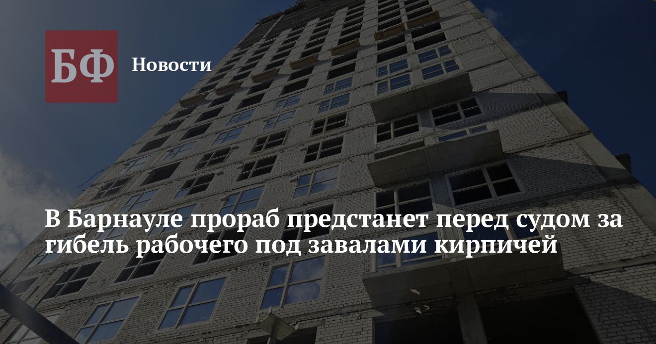 Следком завершил расследование уголовного дела в отношении 42-летнего мастера строительного участка в Барнауле, на котором груда кирпичей насмерть прибила рабочего. Как сообщили в СУ СК РФ по Алтайскому краю и региональной прокуратуре 7 апреля, в скором времени он предстанет перед судом.