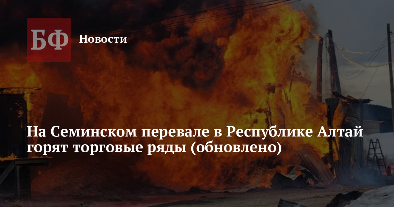 В Республике Алтай на Семинском перевале загорелись торговые палатки. Кадры с пожаром от очевидцев опубликовали «Вести Эл Алтай». Отмечается, что на месте возгорания якобы взрываются газовые баллоны.