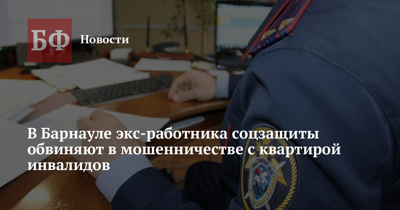 Следком завершил расследование дела в отношении бывшего специалиста по работе с семьей отделения социальной реабилитации филиала по Железнодорожному району КГБУСО «Комплексный центр социального обслуживания населения города Барнаула». Ее обвиняют в мошенничестве с квартирой инвалидов, сообщают пресс-службы СУ СК РФ по Алтайскому краю и краевой прокуратуры 10 апреля.