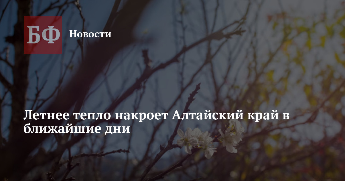 В Барнауле в ближайшие дни также будет тепло и без осадков. Так, 11 апреля температура поднимется до +20…+22 ℃, а ночью столбики термометров опустятся до +1…+3℃. 12 апреля температура вырастет до +24…+26 ℃, а ночью будет держаться в диапазоне от +7 до +9℃. 13 апреля от +23 до +25℃, ночью до +9…+11℃. Ветер преимущественно юго-западный с порывами до 5−10 м/с.