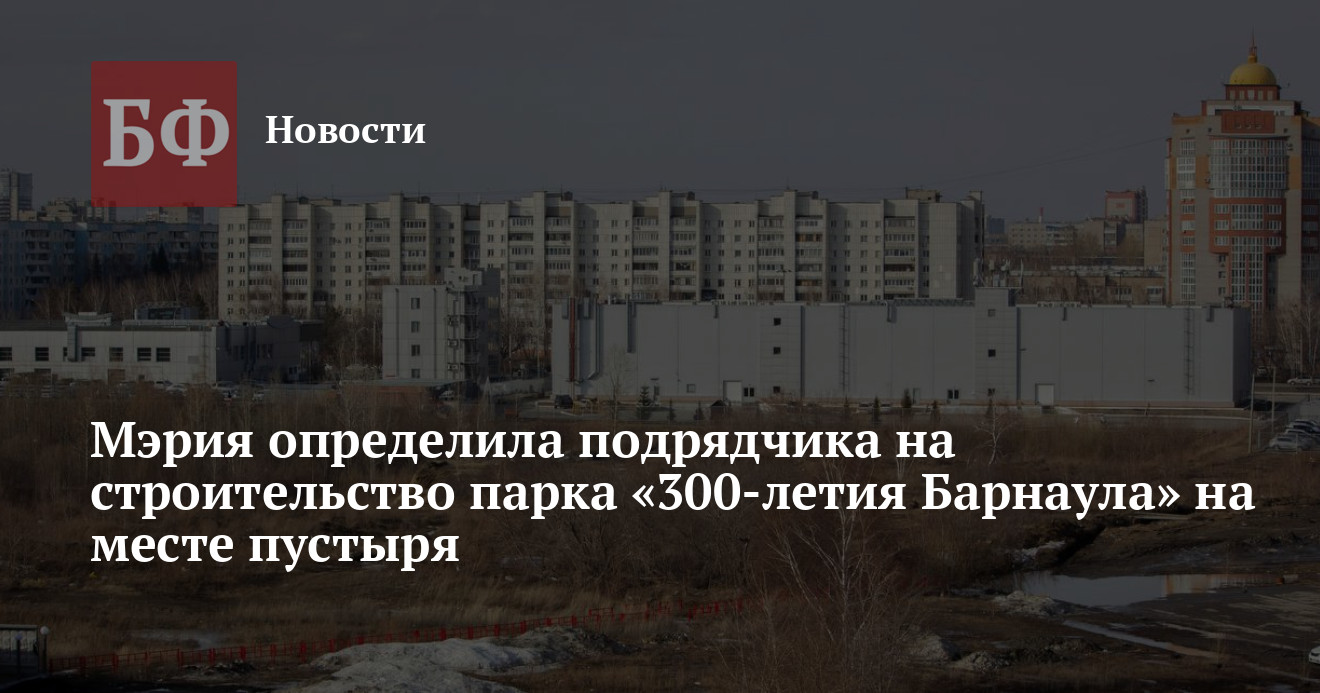 Городская администрация нашла подрядчика для возведения на месте пустыря парка «300-летия Барнаула». Им стало ООО «Ной» с ценовым предложением в 89,7 млн рублей, сообщается на сайте госзакупок.