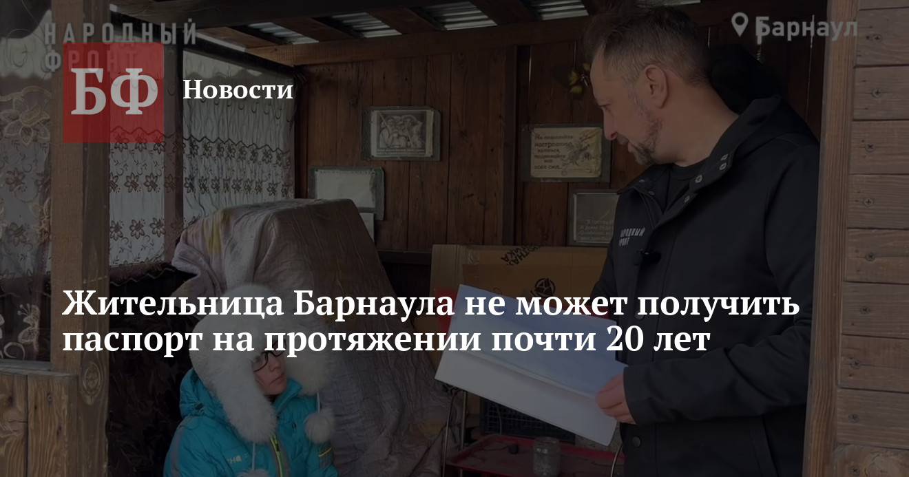 Представители «Народного фронта» из Алтайского края взяли на контроль ситуацию женщины, проживающей в Барнауле, которая не может на протяжении около 20 лет получить паспорт. Она много раз обращалась в МФЦ и миграционную службу за получением документа, но ей в этом отказывали. Также женщина получает штрафы за отсутствие документа, сообщают в региональном исполкоме ОНФ 14 апреля.