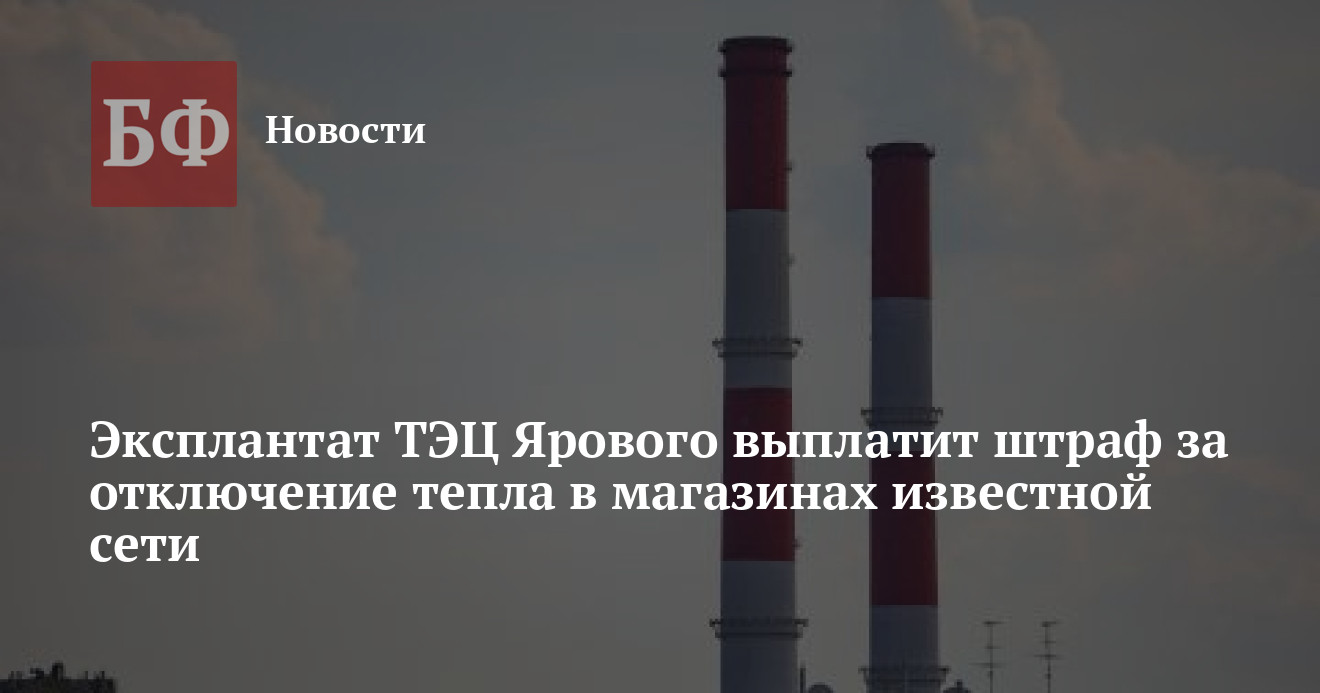 Как стало сообщалось ранее, ООО «Мария-Ра» обратилось в антимонопольный орган с заявлением об ограничении подачи тепла и горячей воды в двух магазинах в Яровом. По итогам его рассмотрения ведомство возбудило дело о нарушениях при исполнении договора теплоснабжения и поставки горячей воды. В ходе расследования было установлено, что МУП «ЯТЭК», которое эксплуатирует городскую ТЭЦ, незаконно ввело ограничения и впоследствии несвоевременно возобновило теплоснабжение.