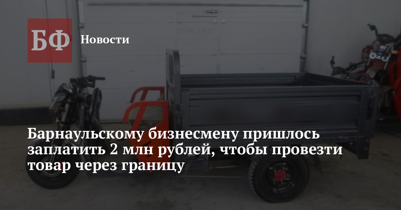 Сотрудники Алтайской таможни пресекли ввоз одним из барнаульских предпринимателей на территорию края ввоз незадекларированных электрических трициклов. Как сообщает пресс-служба ведомства 17 апреля, чтобы продукцию пропустили через границу, он уплатил в федеральный бюджет 2 млн рублей таможенных платежей.