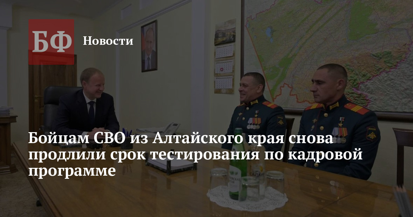 Ранее продление этапа тестирования по кадровой программе анонсировал на своей странице в «ВКонтакте» зампредседателя правительства Алтайского края Денис Губин, который курирует проект. Он сообщил, что такое решение было принято в связи с пребыванием некоторых участников в зоне специальной военной операции, из-за чего не все смогли вовремя пройти финальный этап отбора. Напомним, что в первом потоке образовательной программы «Алтай — земля героев» зарегистрировалось 550 человек, в том числе 400 бойцов специальной военной операции, действующих военнослужащих и сотрудников силовых ведомств и 150 ветеранов СВО.