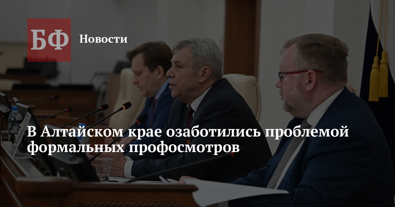 Как сообщили в пресс-службе АКЗС 24 апреля, в совещании приняли участие депутаты, глава алтайского Минздрава, главврачи государственных и частных медицинских организаций, а также представители работодателей и профсоюзов. Председатель профильного комитета АКЗС Владимир Лещенко в начале заседания обозначил, что встреча дает старт работе по преобразованию системы предварительных и периодических медосмотров (профосмотров) и отношения к ним.
