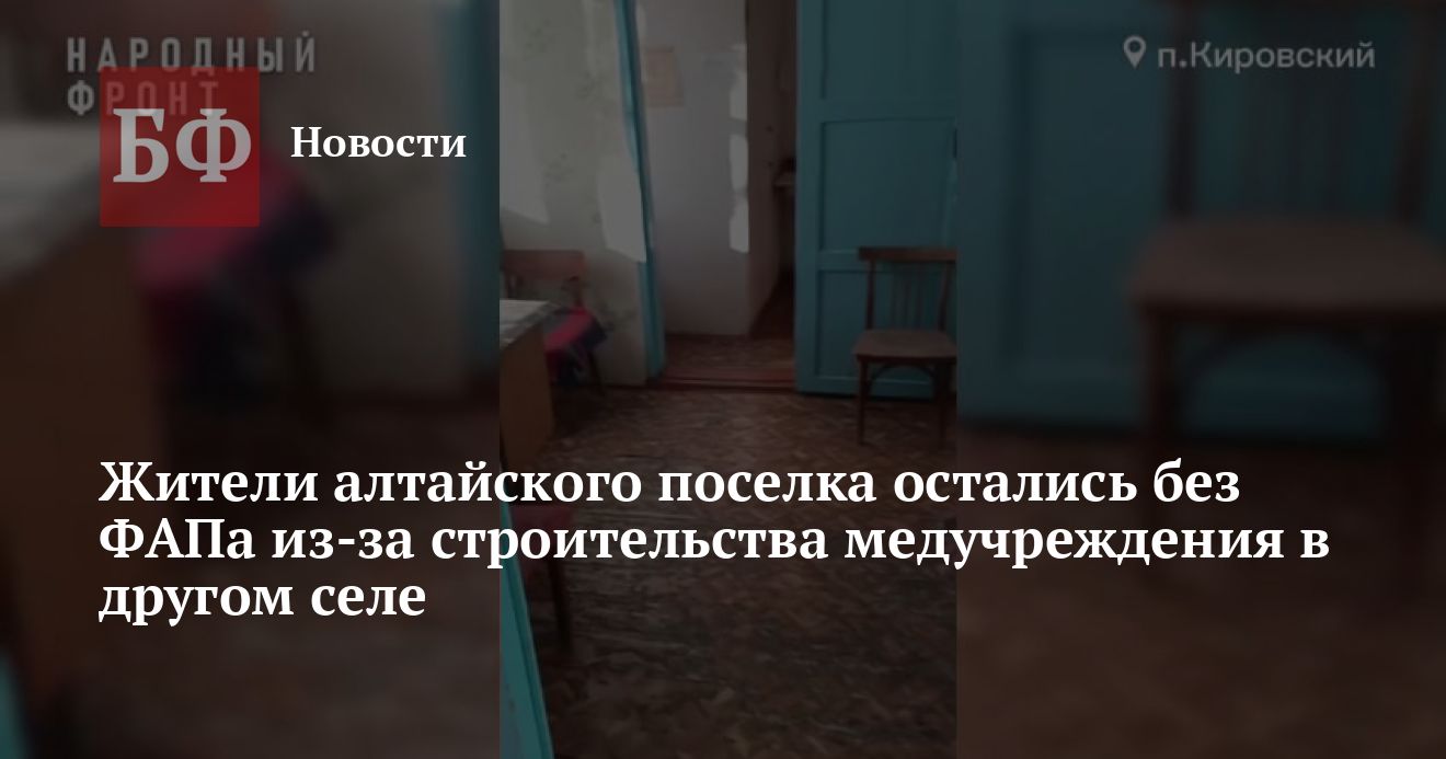 Во время мониторинга первичного звена здравоохранения активисты алтайского исполкома «Народного фронта» выяснили, что ФАП в поселке Кировский должны были построить в 2024 году в рамках нацпроекта «Здравоохранение», однако строительство отменили. Вместо этого проект заменили на строительство ФАПа в селе Зятьково Панкрушихинского района, которое находится за 500 км от Кировского. Причиной тому стало отсутствие подходящего земельного участка и хорошее автобусное сообщение с городом, где находится крупное медучреждение. Тем временем кировчане продолжают лечиться в ветхом здании районной администрации.