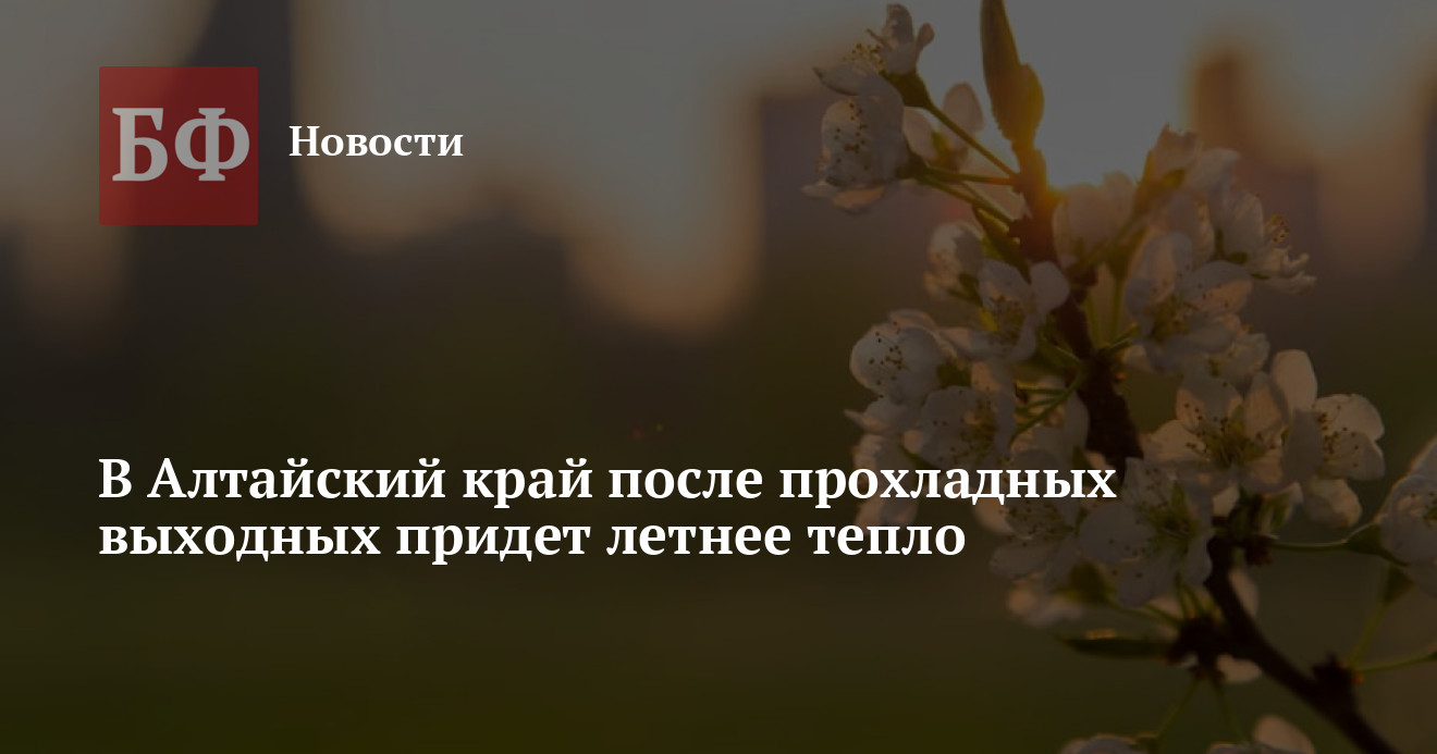 В начале недели в Алтайском крае ожидается потепление. По данным регионального ЦГМС, температура воздуха в ближайшие три дня поднимется с +16 ℃ до +30 ℃.
