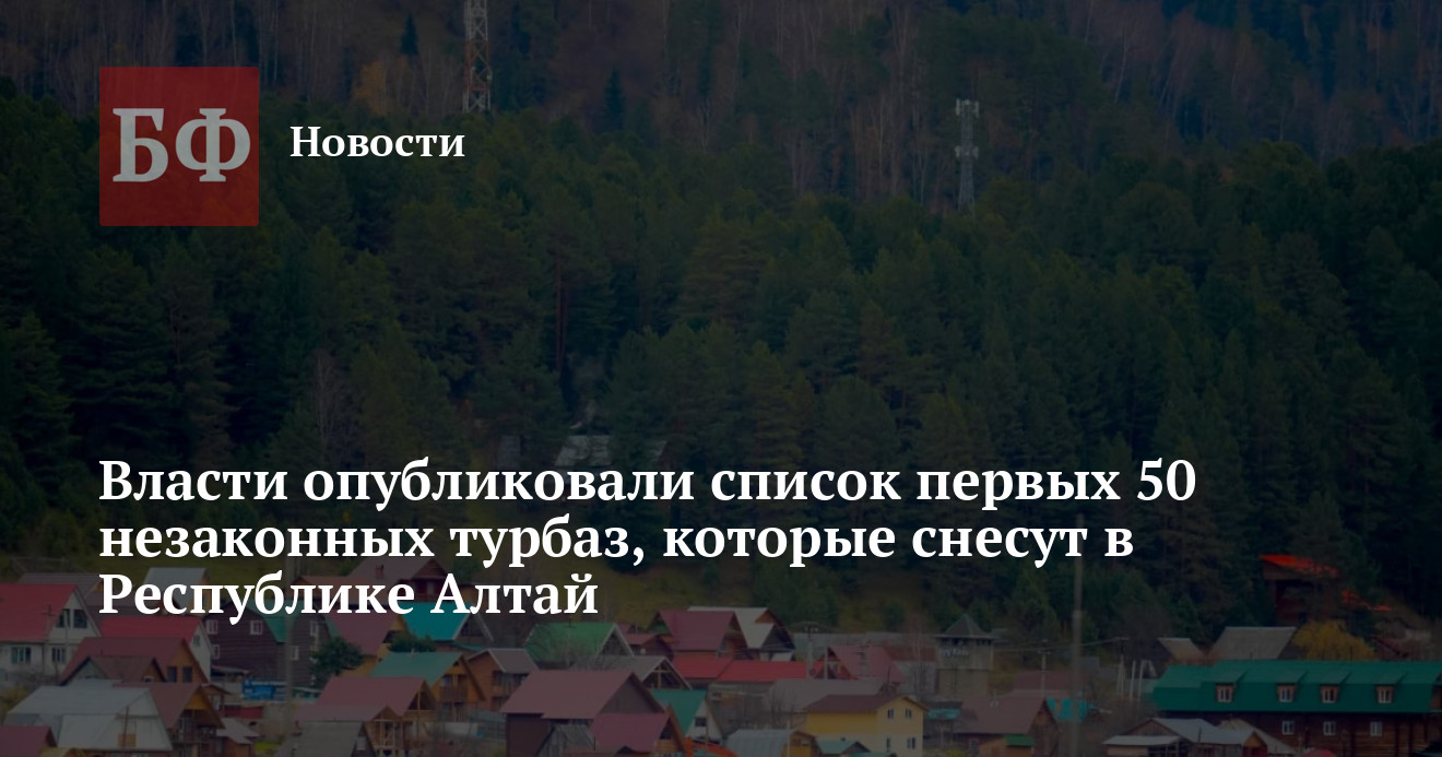 По данным «Толка» часть незаконно возведенных турбаз ликвидируют во внесудебном порядке, а остальные — по решению суда. Отмечается, что в рамках кампании по легализации турбизнеса власти республики продолжат выкладывать в открытом доступе списки подлежащих сносу объектов. Данное поручение действовать максимально открыто и публично давал глава Республики Алтай Андрей Турчак.